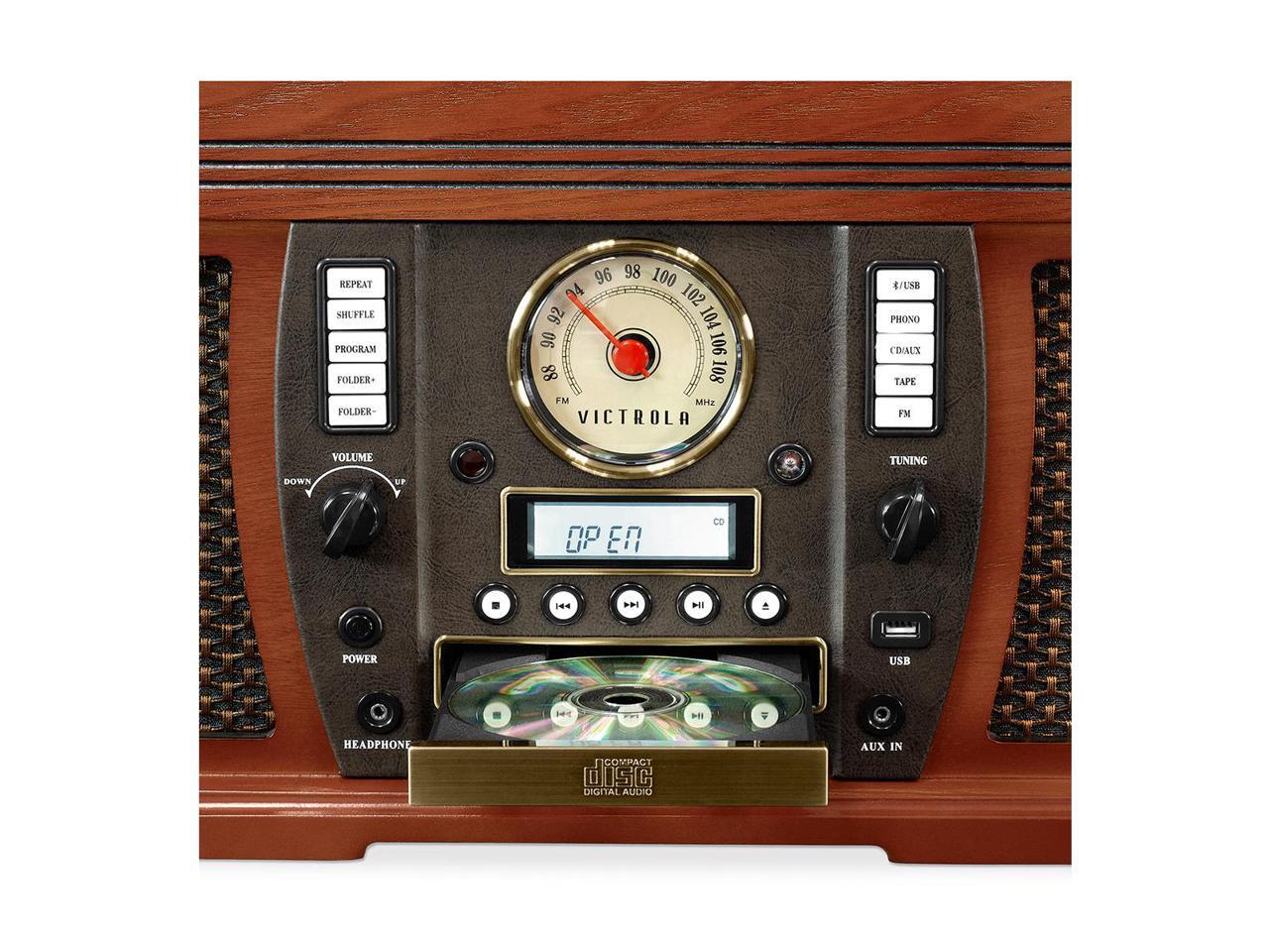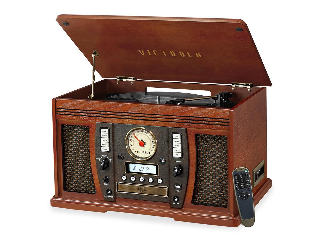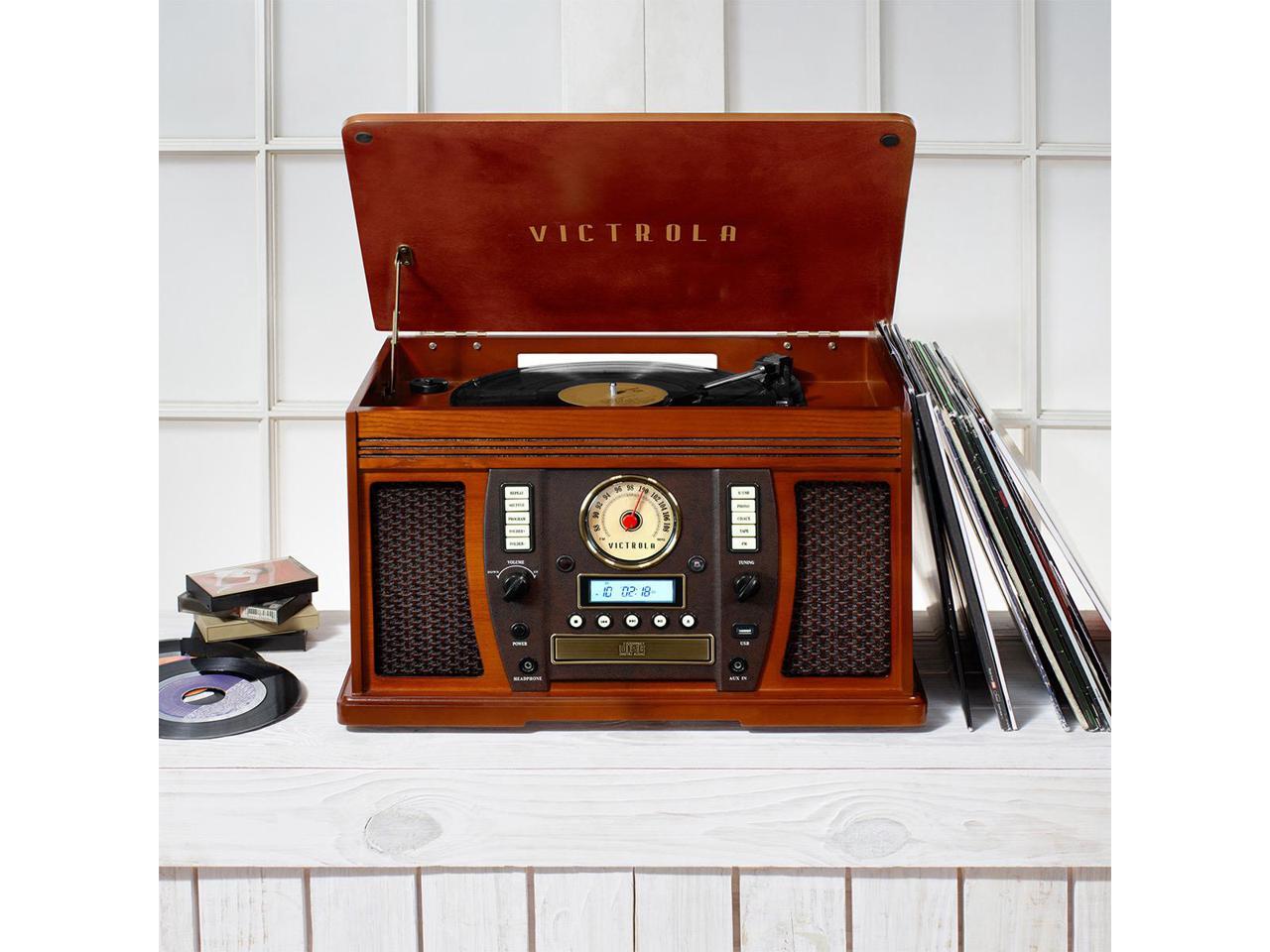 Victrola VTA-750BMH Nostalgic Aviator 8-in-1 Turntable Wooden Entertainment Center with Bluetooth, Mahogany