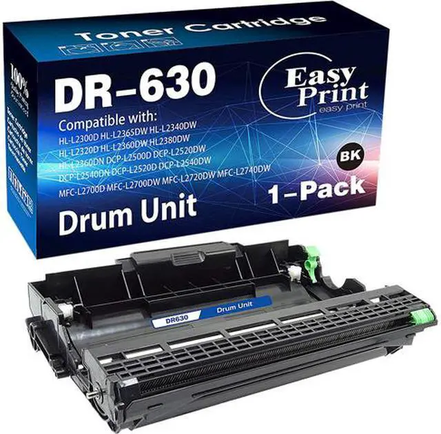 | Specifications | Global Product Type: Print and Imaging Supplies-Drum Unit OEM/Compatible: Compatible Supply Type: Drum Unit Device Types: Laser Printer Page-Yield: 12,000 Remanufactured: Yes Replacement For: DR630 For Use With: Brother DCP-L2520DW, L2540DW,HL-L2300D, L2305W, L2320D, L2340DW, L2360DW, L2380DW,MFC-L2680W, L2700DW, L2705DW, L2707DW, L2720DW, L2740DW |