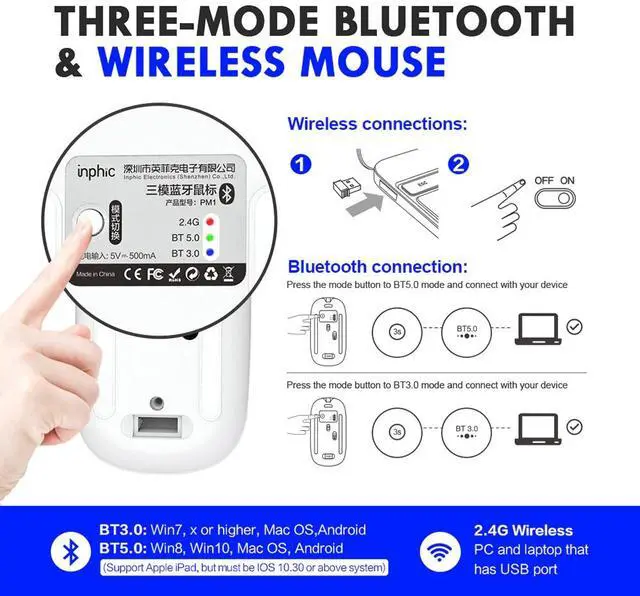 Bluetooth 5.0 mode: WIN8 / WIN10,For Mac OS 10.10 or later, For iPad OS 13.1 or later, Chrome OS, Android system (Bluetooth 5.0 does not support Win 7/ XP)
