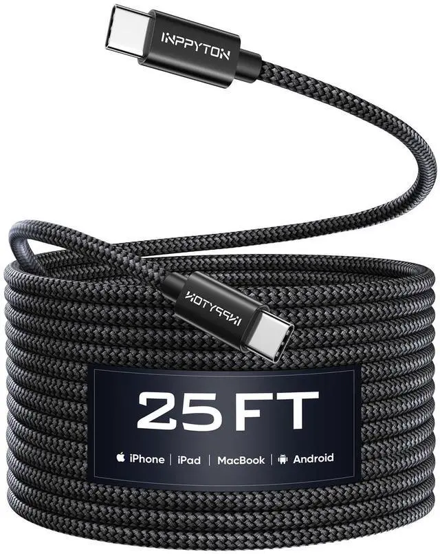 ![Main image of USB C to USB C Cable 25Ft [Braided Nylon, 60W Fast Charging] Type C to C Charger Cord for iPhone 16/15, Galaxy, MacBook, iPad Pro, Camera & More - Black](https://c1.neweggimages.com/productimage/nb640/C3H4D25121108YL3J18.jpg)