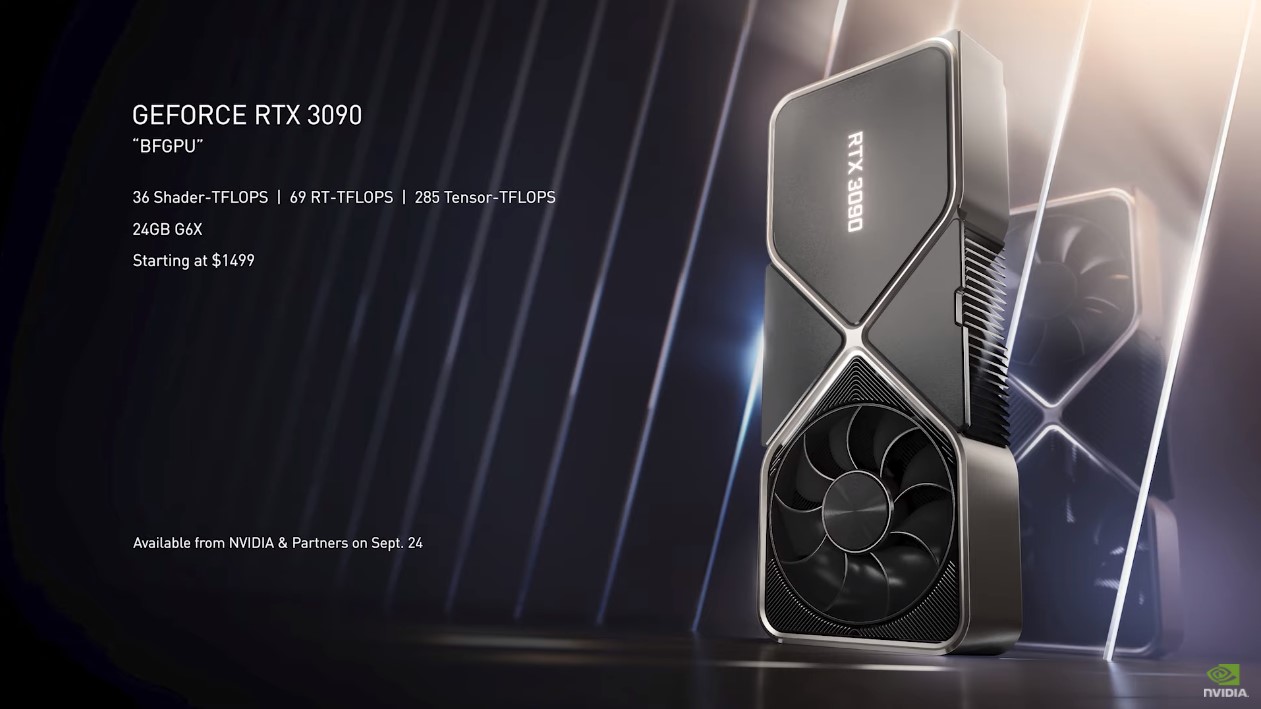 The 3090 will be a crispy $1499, and will be available September 24, 2020.