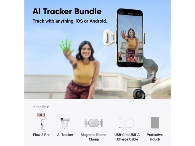Insta360 Flow 2 Pro 3-Axis AI-Powered Gimbal Stabilizer AI Tracker Bundle, Gray