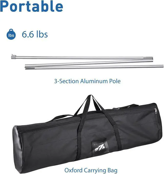 - Portable Design - Aluminum pole can be fast collapsed into 3 sections and stored into carry bag we provide for easy transport and being packed into your car truck