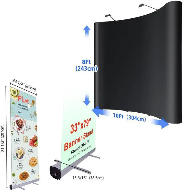 - Large Size - 10x8ft Foldable Display Backdrop kit comes with a 10x8ft large backdrop, 2 halogen spotlights, a trolley case, and all necessary accessories, enabling quick unfolding for displaying large banners and slogans at different venues, such as exhibitions, trade shows, conferences, lecture halls, museums, shopping malls, etc.