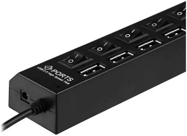 | Features | Expand your computers connectivity with this 7-port USB hub with ON / OFF switch Designed with 7-ports, this compact USB 2.0 high-speed hub is small enough for travel, and capable enough to meet your connectivity needs Plug and play; no driver required ON / OFF switches activate or deactivate individual ports LED indicator lights show which USB ports are in use at any given time Built-in USB cable. |