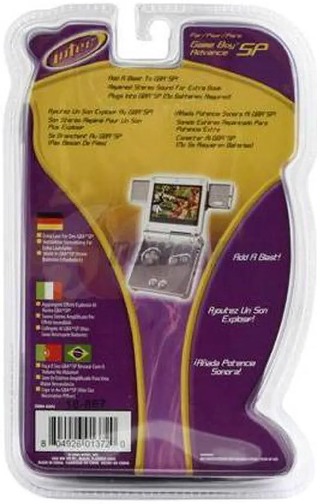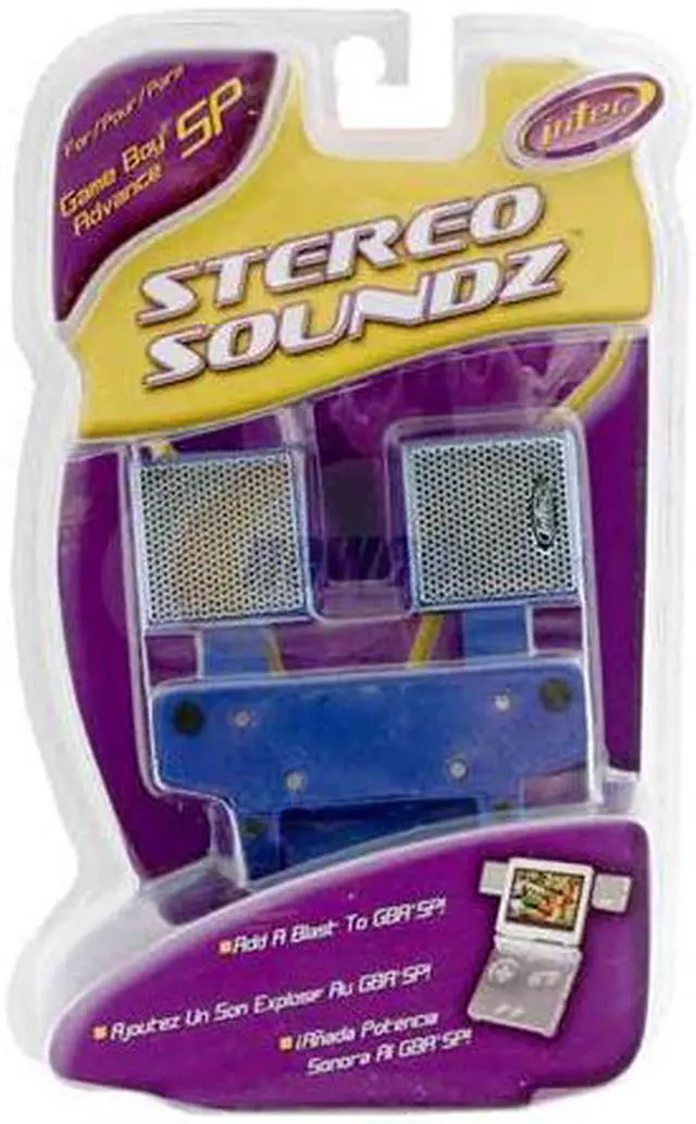 | Features | Add intense audio to your favorite games with these stereo speakers. Compact and lightweight, they install in seconds--just plug them into your Game Boy Advance SP and get ready for super sound.Shown with Game Boy Advance SP (not included) |