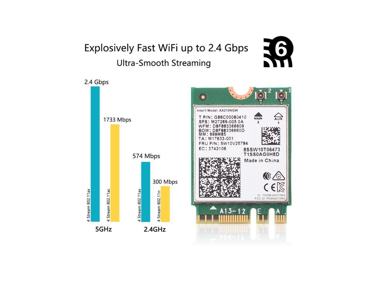3000Mbps WiFi 6E Intel AX210 Bluetooth 5.2 M.2 2230 Key E WiFi 6 Card 2.4G/5Ghz/6Ghz Wireless AX210NGW 802.11ac/ax WiFi Adapter, Support Windows 10 Linux