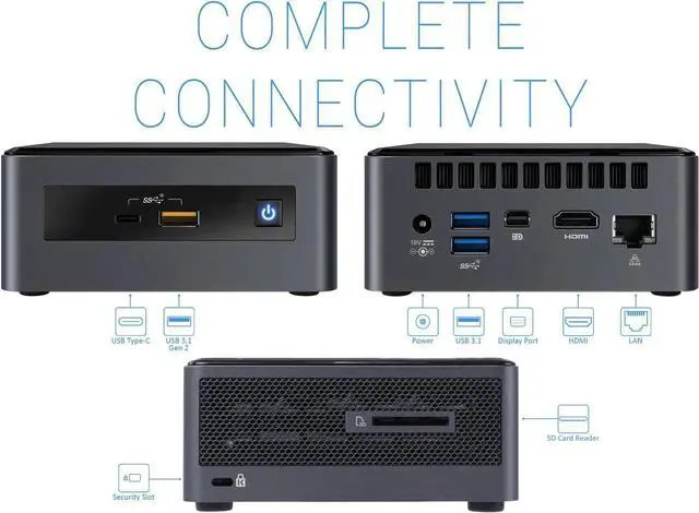 Stream 4K video, edit media, work from home, or finish your homework. All at a size you can tuck away in a drawer. You can stream premium movies and experience high fidelity audio and immersive 4K Ultra HD video powered by Intel UHD Graphics. Get ready for incredible graphics, sound, and performance whether it's from your home movies or Hollywood films. Access your digital life out of the box with the latest Intel Wi-Fi 6 and Bluetooth 5 technology. Connect your Intel NUC to a WiFi device for rich visuals and audio without the clutter of cables. And the quad-mic array makes for a great virtual personal assistant experience from anywhere in your home.