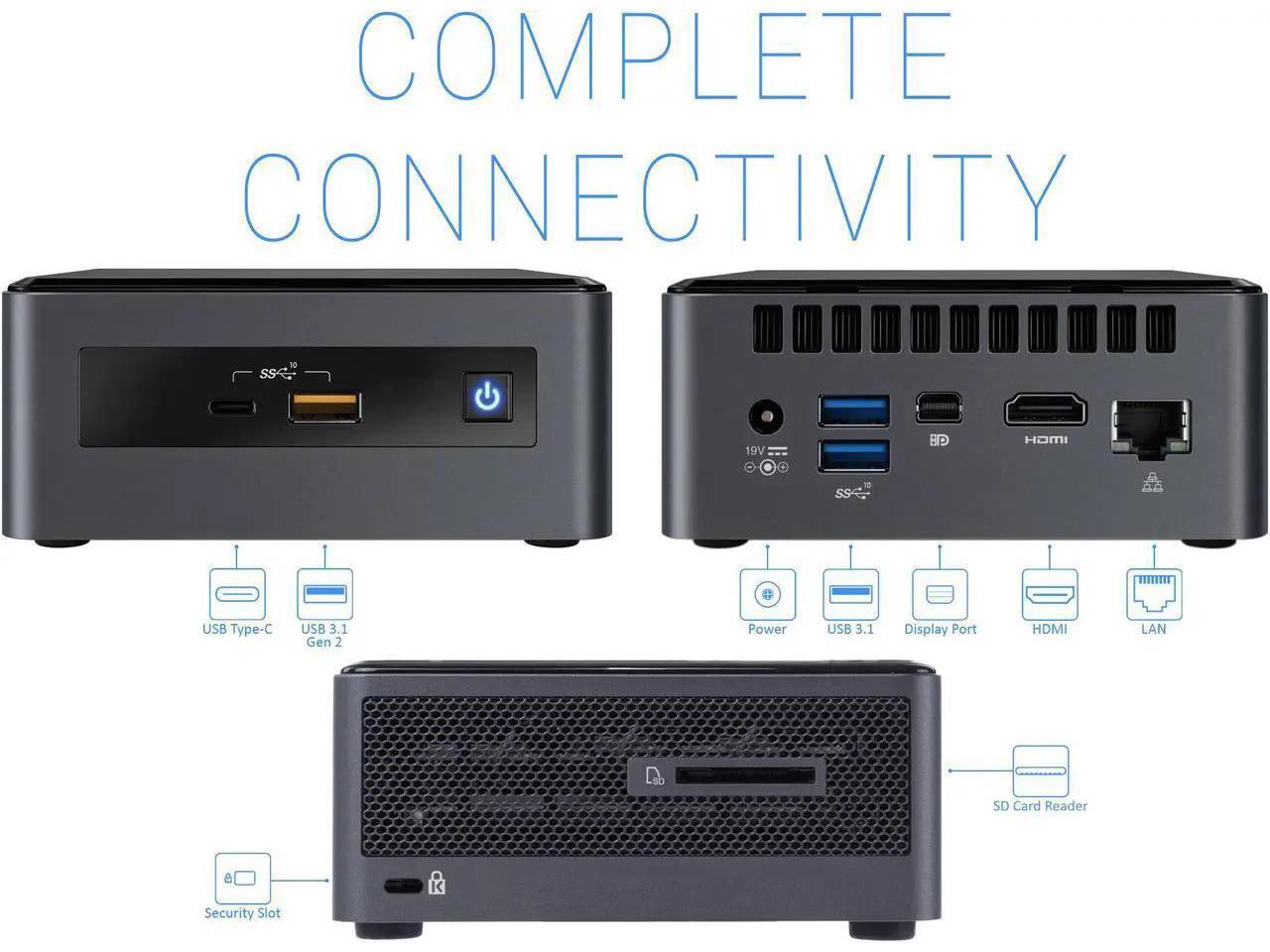 Intel NUC10i5FNH Mini PC, Intel Core i5-10210U Upto 4.2GHz, 8GB RAM, 256GB NVMe SSD + 500 GB HDD, HDMI, Thunderbolt, Card Reader, Wi-Fi, Bluetooth, Windows 10 Pro