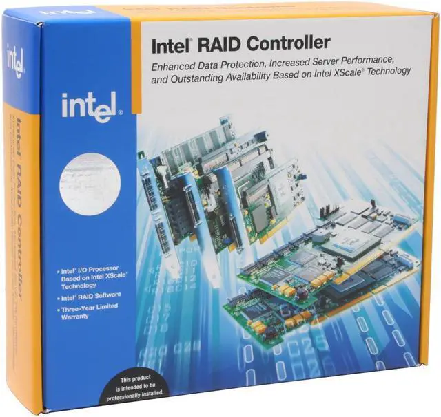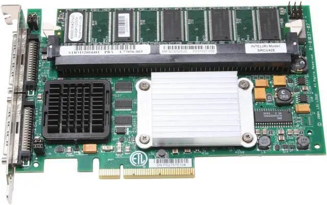 | Features | Intel® 80332 500MHz I/O processor Dual-channel Ultra320 SCSI with support for up to 30 hard drives Support for up to 512 MB of ECC SDRAM Optional Intel® Portable Cache Module(128MB DIMM with battery) Intel® RAID Software: Intel® RAID BIOS Console,Intel® RAID Web Console, and Intel® RAID Flash Utilities Support for Microsoft* Server Clustering |