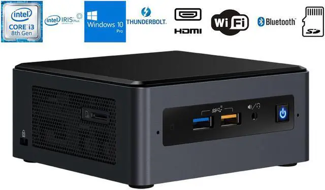 Model: Intel NUC NUC8I3BEHForm/Style: Mini PCModel No: BOXNUC8I3BEH1Processor: 8th Gen Intel Core i3-8109U 3.00GHz Processor (upto 3.6 GHz, 4MB Cache, 2-Cores, )Memory: 32GB DDR4 SO-DIMMGraphics: Intel Iris Plus 655 Integrated Graphics, Storage: 256GB PCIe SSD (Solid State Drive) + 1TB HDD (Hard Disk Drive)Operating System: Windows 10 ProDisplay: No Display Connectivity: 802.11ac Wifi, Bluetooth 5.0, Ethernet LAN (RJ-45)Ports/Slots: 4 USB 3.1 Gen1, 1 HDMI, Thunderbolt 3 (Type-C), Micro SD Reader, No Optical Drive, Headphone/Microphone Combo JackInput/Output: No Webcam, Battery: 90W Power Supply, Other Features, Color: BlackWeight: 1.8lbProduct Dimensions (WxLxH): 4.5 IN x 4.61 IN x 2.01 IN1 Year Manufacturer warranty from Velztorm (Professionally upgraded by Velztorm)