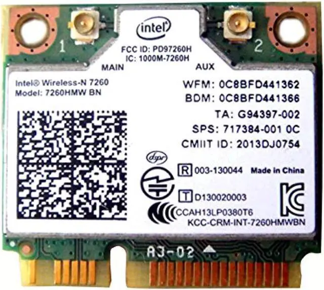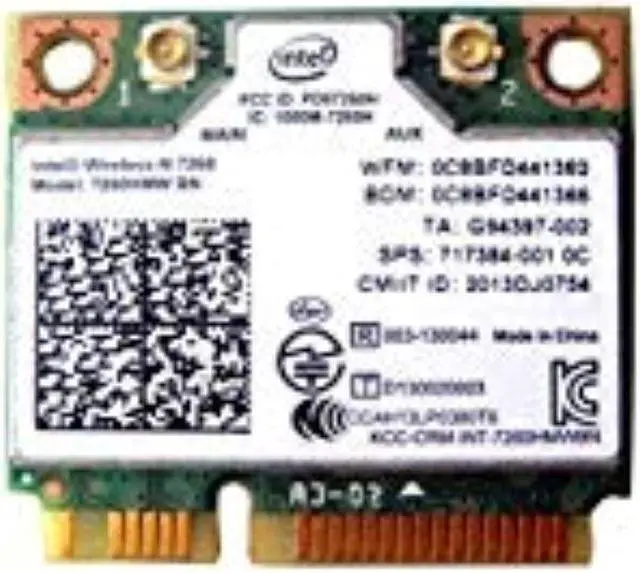 Brand: Original Intel Model: 7260HMW BN / Intel Wireless-N 7260 Bios: HP Version (only use in HP laptop) Type: 802.11 b/g/n + BT Interface: half Mini PCI-e Condition: New & Unused Warranty: Doa 30 Days