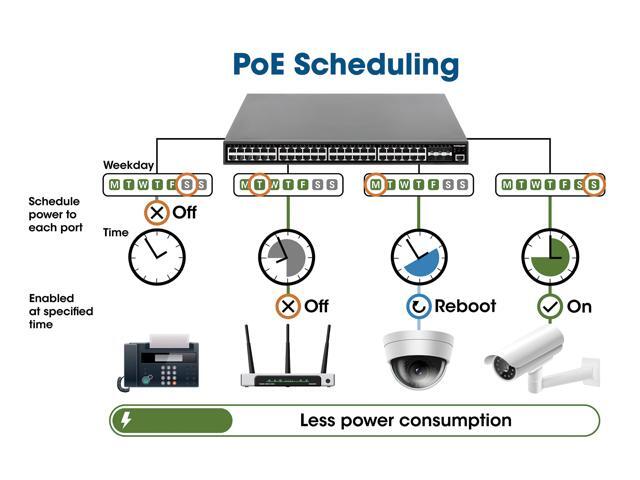 - Self-Healing Network - the Powered Device Monitor feature (PDM) restarts any connected PoE device that fails to respond or send out network traffic