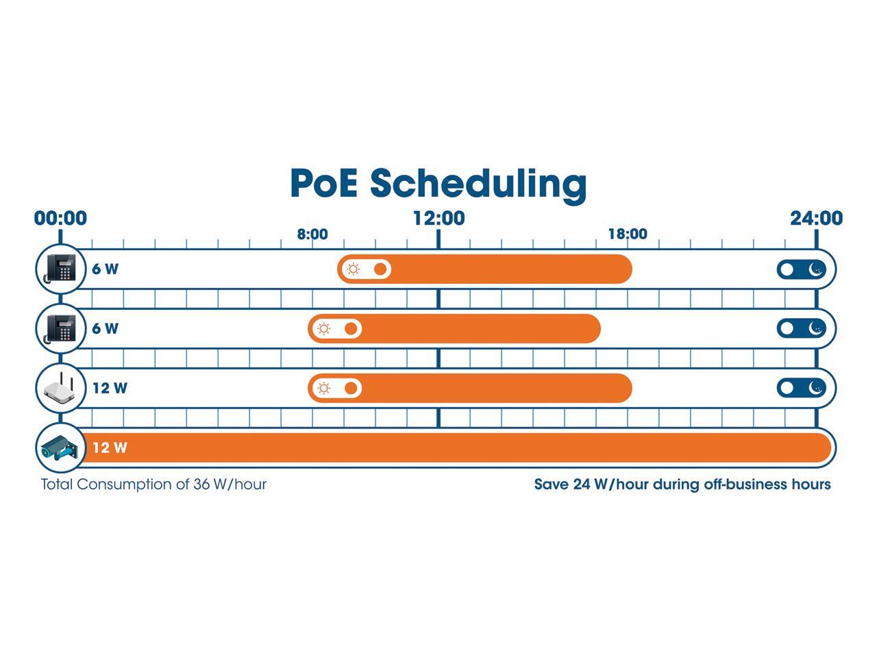 - PoE power budget of 240 watts