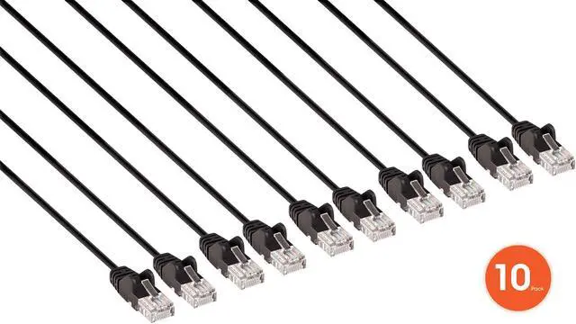 Intellinet Cat6 U/UTP Slim Network Patch Cable, 1 ft., Black, 10-Pack, 10G, 250 MHz, 100% Copper, 30 AWG, RJ45, Stranded, Snag-free, Gold-plated Contacts