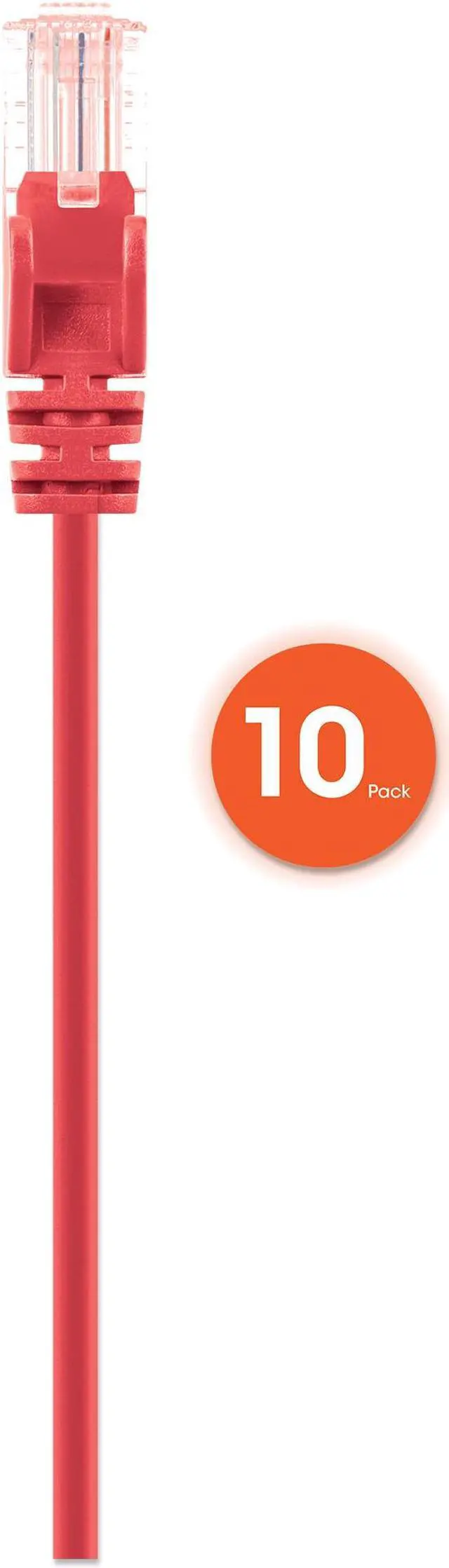 Intellinet Cat6 U/UTP Slim Network Patch Cable, 14 ft., Red, 10-Pack, 10G, 250 MHz, 100% Copper, 30 AWG, RJ45, Stranded, Snag-free, Gold-plated Contacts