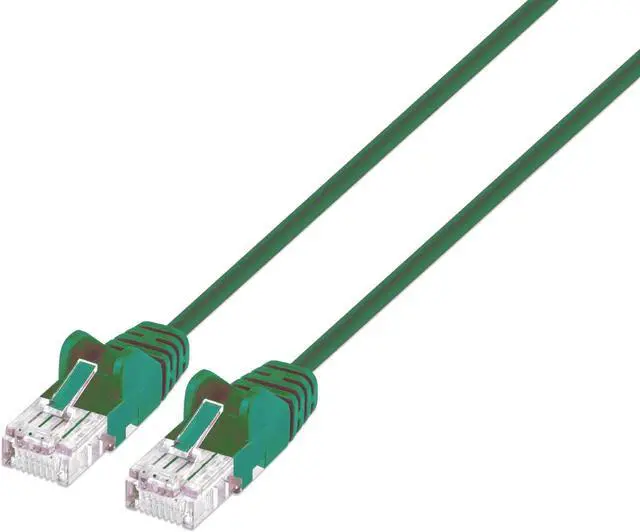 Intellinet Cat6 U/UTP Slim Network Patch Cable, 7 ft., Green, 10G, 250 MHz, 100% Copper, 30 AWG, RJ45, Stranded, Snag-free, Gold-plated Contacts
