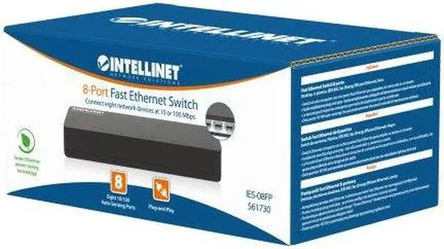 The 8-Port Fast Ethernet Switch from Intellinet Network Solutions is perfect for home offices and small-size businesses looking for a durable switch that is reliable and easy to install. Small and powerful, this Fast Ethernet Switch is easy to install and connects up to eight computers, servers, printers, switches or any other Ethernet devices at 10 or 100 Mbps over Ethernet cables, and it works with any operating system. The auto features of this switch make installation plug-and-play and hassle-free. Plus, it has Green Ethernet technology, allowing it to monitor power usage and turn off unused ports to save electricity.