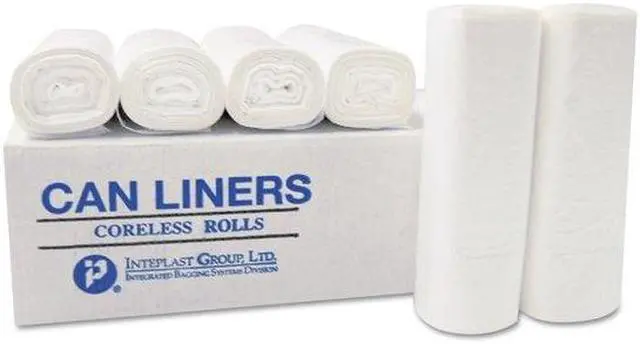 Interleaved for easy dispensing. Made from Formosa resins for reliability and consistency. Star-sealed bottom distributes weight evenly and creates a seal up to eight times stronger than the film itself. Innovative clamshell box with E-Z identification eliminates confusion. Application: Can Liner; Capacity Range (Volume) [Min]: 20 gal; Capacity Range (Volume) [Max]: 30 gal; Thickness: 0.39 mil. Includes 20 rolls of 25 can liners, 500 can liners per case