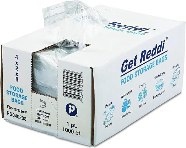 FDA approved food bags for sanitary storage. Superior closure to lock in food freshness. Easy one-at-a-time dispensing from clam shell carton. Crystal clear with a shiny gloss.