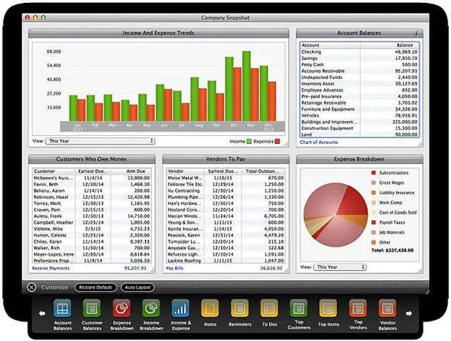 Make Better Decisions for Your BusinessStay on top of your business with Company Snapshot. Use rich, graphical widgets to customize your Company Snapshot, and access the data that's most relevant to your business. At a glance, see year-over-year income and expense trends, and top customers. Customize over 115 reports to analyze your business.
