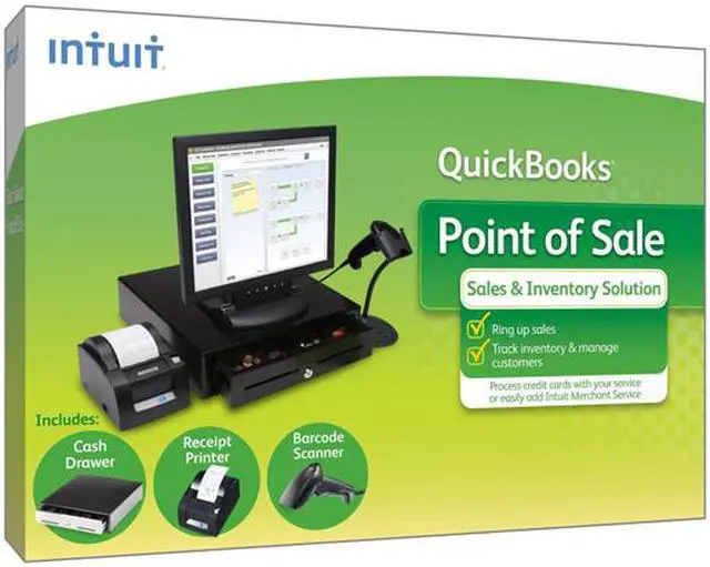 | Feature | QuickBooks Point of Sale Basic offers tools to help smaller stores easily track sales, inventory and customers See your business at a glance--quick and easy access to all your critical information Be more efficient--update pricing, create POs, and take care of other key tasks in minutes Know what's selling--identify which items are profitable for you, and which are not Bundle includes POS software, bar code scanner, receipt printer, cash drawer |