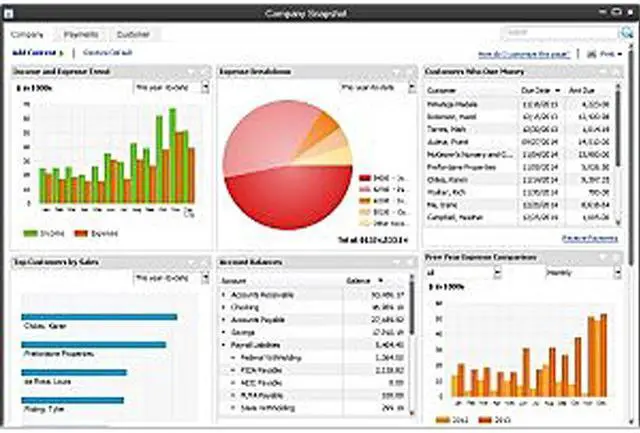 | Feature | Simplified and improved navigation helps you get to the information you need faster and easier. Bigger fonts and updated color scheme improves readability and helps you focus on your task at hand. New customizable left tool bar provides easy access to your open windows and most common tasks, such as new customizable account balances and favorite reports. Simplified layout for Invoices, Estimates, Sales Orders and other forms provides easier access to actions that were previously hidden or required several clicks to execute. New tab ribbon format provides consistent placement of actions, help making it faster and easier to accomplish key tasks. Updated centers allow for more customization. Expanded contact information fields in the Employee, Customer and Vendor Centers are now more customizable, allowing up to 8 contact fields and multiple notes per contact. PLUS many improvements you've been asking for: - Option to display totals on final page only - Copy and paste in search field - Add up to 20 invoices in one email - "Save as PDF" button in reports and centers |