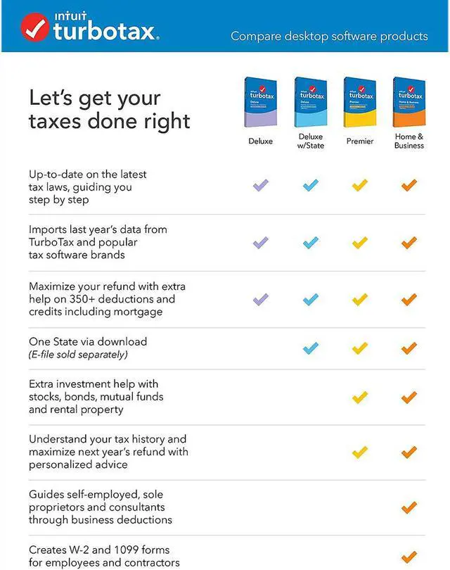 Mac CD/Download Products (Basic, Deluxe, Premier and Home & Business) Operating Systems macOS Mojave 10.14 or later. - Specific MAC OS: macOS Mojave 10.14, Catalina 10.15 RAM 2 GB or more recommended. Hard Disk Space 1 GB for TurboTax. Monitor 1024x768 or higher recommended. Internet Connection 1 Mbps modem (Broadband connection highly recommended). Required for product activation, software updates and optional online features. Printer Any Macintosh-compatible inkjet or laser printer. |