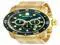 The Pro Diver collection by Invicta is stylish and versatile. Its comfortable bracelet, soothing green dial, wonderful color scheme, precise chronograph complication, luxurious 18K gold plating and spectacular 200M water resistance capability makes this particular timepiece a must-have for any man's collection. Complete yours today.