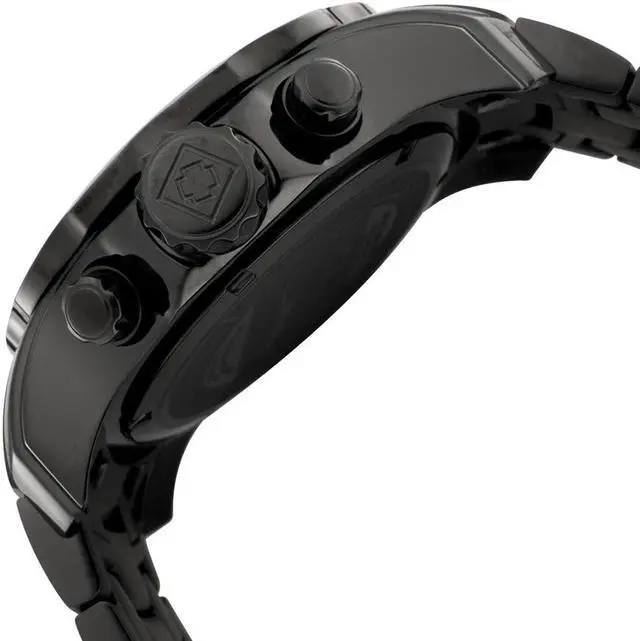 This sporty timepiece is equipped with precise, Swiss quartz movement and is water-resistant up to an impressive 660 feet (200 meters). Precise Swiss-quartz movement, Durable flame-fusion crystal; brushed and polished black ion-plated stainless steel case and bracelet, Chronograph functions with 60 second, 30 minute and 12 hour subdials; date function, Black dial with silver-tone hands and hour markers; luminous; unidirectional bezel; magnified date window, Water resistant to 660 feet (200 M): suitable for recreational scuba diving
