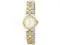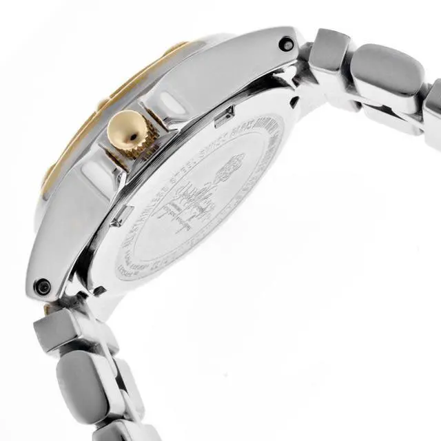 This timepiece uses reliable Swiss quartz movement and is water resistant up to 165 feet (50 meters). Precise Swiss-quartz movement, Durable flame-fusion crystal; brushed and polished stainless steel and 18k gold-plated case and bracelet; actual bracelet width 12 mm, 24 white crystals set on 18k gold-plated bezel, White dial with gold-tone hands, hour markers and roman numeral 12; 18 white crystals set on bracelet, Water resistant to 165 feet (50 M): suitable for swimming and showering