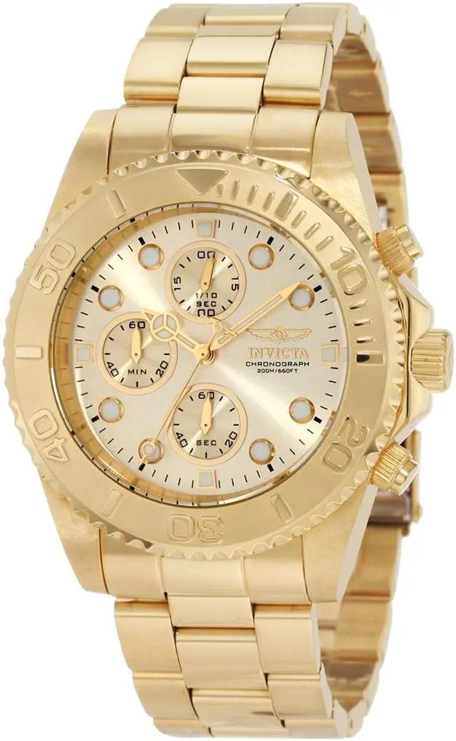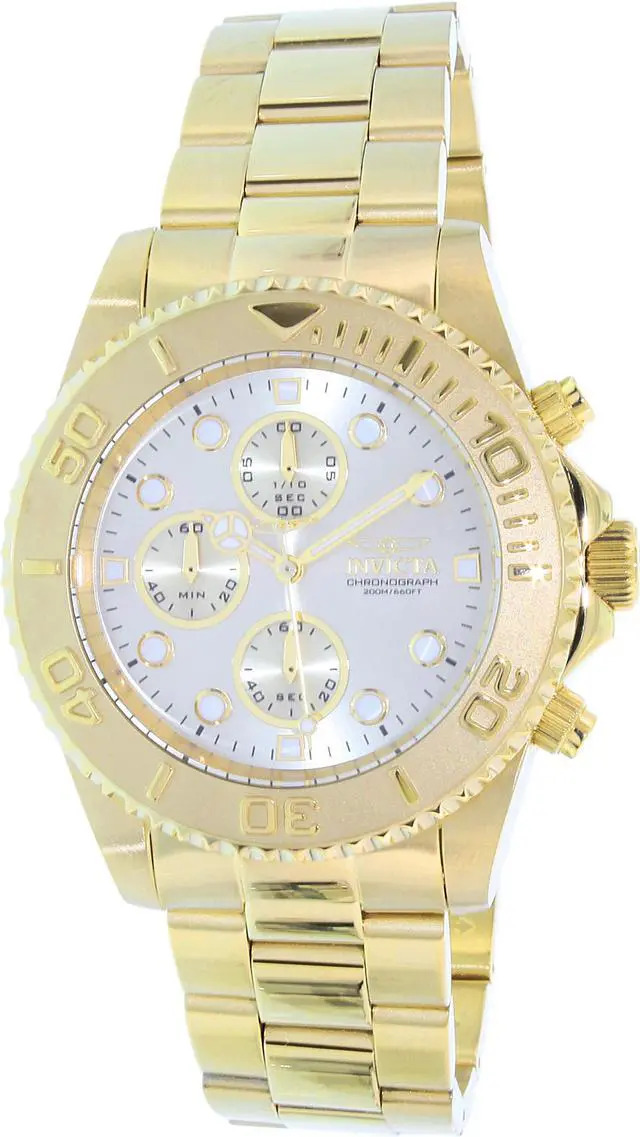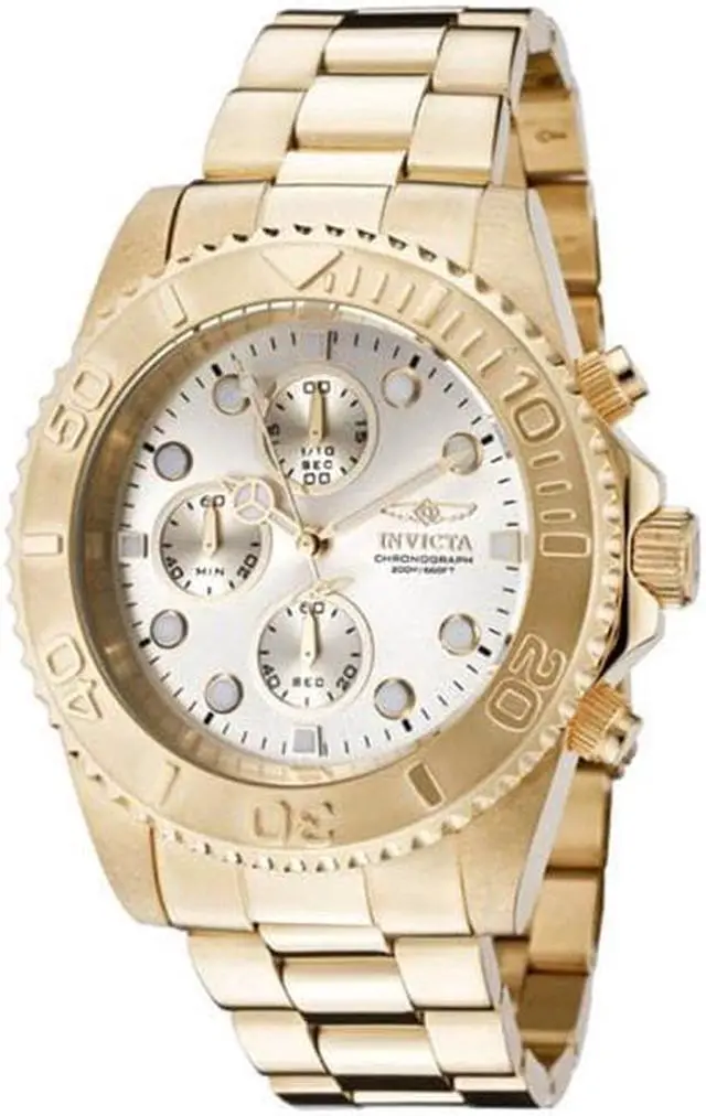 Invicta 1774 Gold Tone Stainless Steel Pro DIver Quartz Chronograph Silver Tone Dial