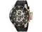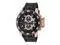 Rose gold-plated stainless steel case with a black polyurethane strap. Uni-directional rotating black bezel. Black carbon fiber dial with luminous gold-tone hands and dot hour markers. Tachymeter around the outer rim.