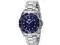 Invicta's Pro Diver automatic watch (model 9094) is perfect for the serious diver who also wants to turn heads with a stylish watch. This precise timepiece features a solid silver stainless steel case that measures 40mm ( 1.57 inches) wide, with a blue unidirectional rotating bezel with silver markings and coin-edged, scalloped highlights. It has a deep blue dial background with luminous Tritnite hands (with seconds hand) and dotted luminous dial markers with small minute indexes. The silver stainless steel bracelet band mixes brushed and polished links and is joined by a diver's buckle and safety clasp.