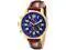 The force to be reckoned with, this Invicta men's chronograph watch features a round blue dial with luminous hands and Arabic hour markers, and date window at 4 o'clock position. All of these are framed in gold plated stainless steel case, push crown on the left side and scratch resistant mineral crystal. It also offers a brown leather strap secured with buckle closure, Japan quartz movement and water resistance up to 100 meters/ 330 feet. Chronograph Round blue dial Luminous hands and Arabic hour markers Gold plated stainless steel case Push crown on the left side Scratch resistant mineral crystal Brown leather strap with buckle closure Japan quartz movement Water resistance up to 100m/330ft Case diameter: 46 mm Case thickness: 13 mm Band width: 22 mm Band length: 210 mm