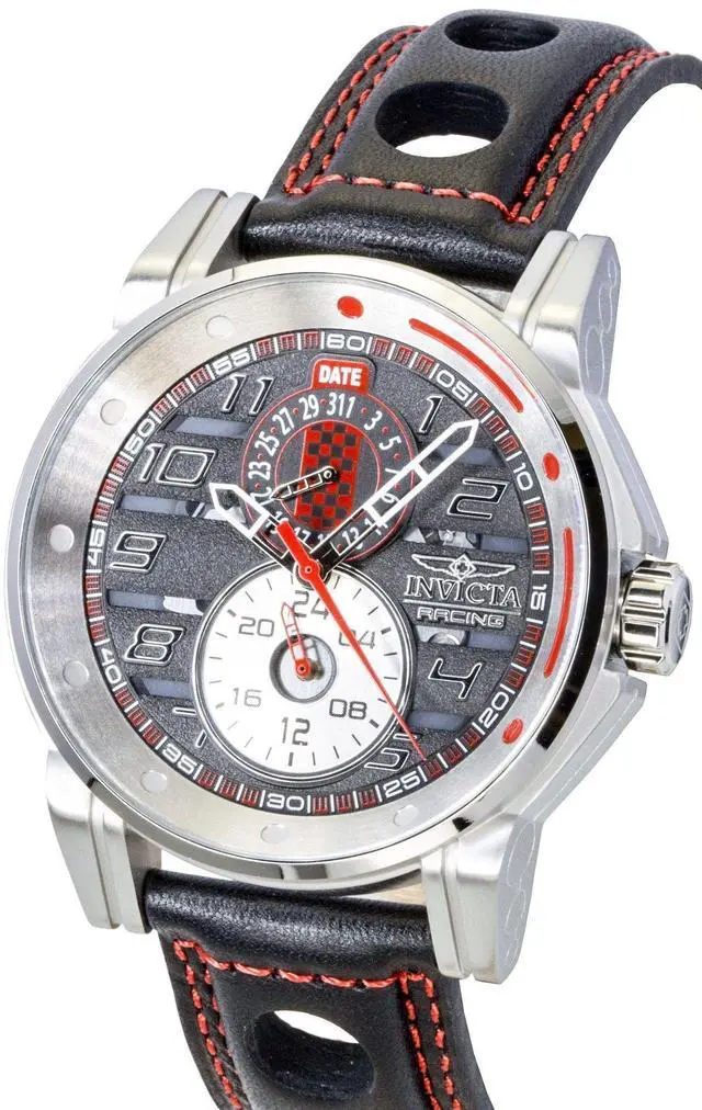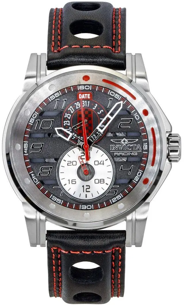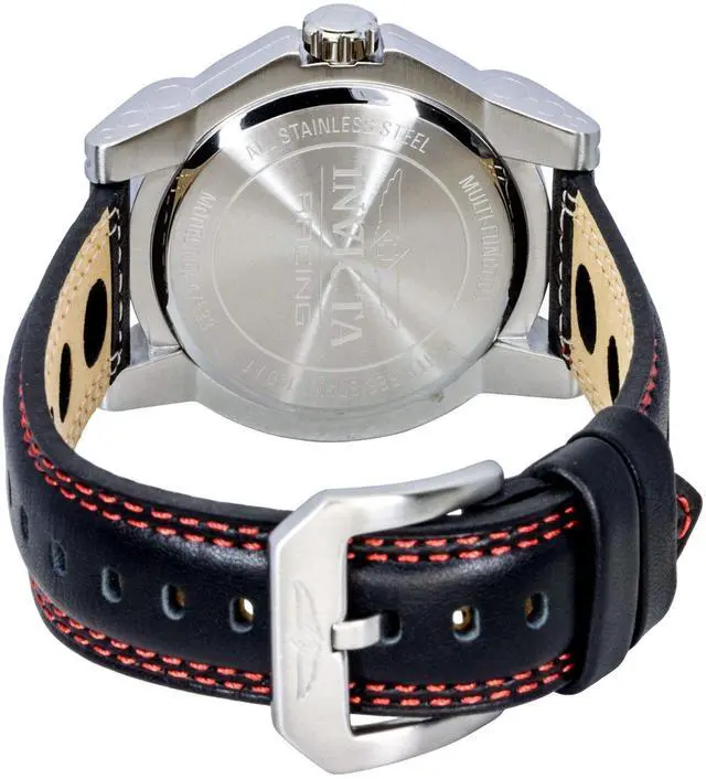 Invicta Racing Leather Strap Skeleton Black Dial Quartz 47533 Men's Watch