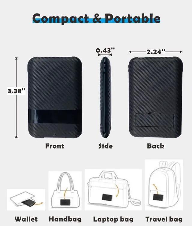 •Credit card size: 3.39*2.24*0.47 inches