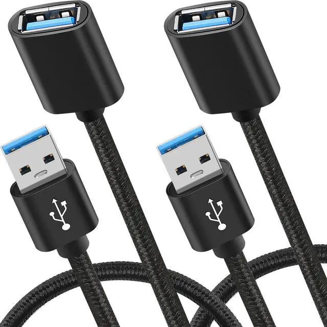 USB 3.0 Extension Cable 2 Pack Nylon Braided Type A Male to Female USB Extender Cord Support High Speed 5Gbps Transfer 2A Charging Data Wire for Wireless Wi-Fi, U Disk, USB Shield, Mobile Phone Charging, Mouse, Keyboard, Printer ect.