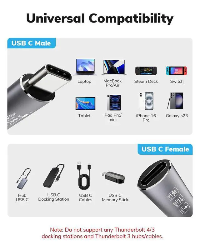 Broad Compatibility Our USB C cable extender has perfect compatibility with most USB C devices, including desktop computers, laptops, smartphones, monitors, projectors, tablets, and various USB C docking stations.