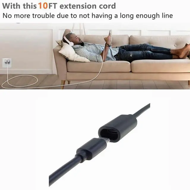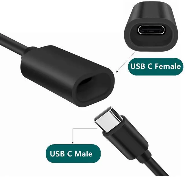 10ft Long Type C Extension Cable, USB C Male to Female Extender Cord Compatible with Ring Pan-Tilt Indoor Cam (2024 Release) Mag-Safe Charger iPhone16 /15 (Black, 10FT)