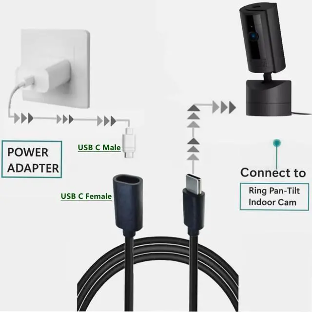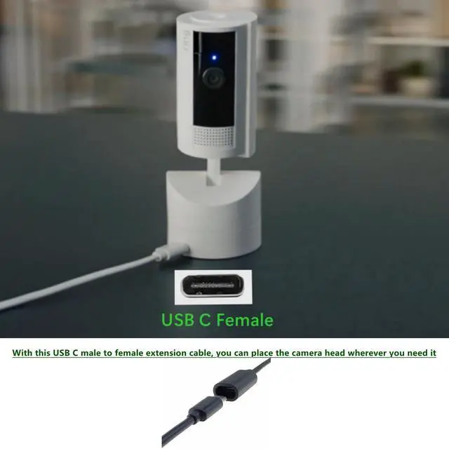 Supported Devices: Designed for extending the speaker,camera System by charging. It can acess hard-to-reach place and protect USB Type C female port of your device from frequent plugging and unplugging ,Compatible with Ring Pan-Tilt Indoor Cam Mag-Safe Charger iPhone16 /15 etc