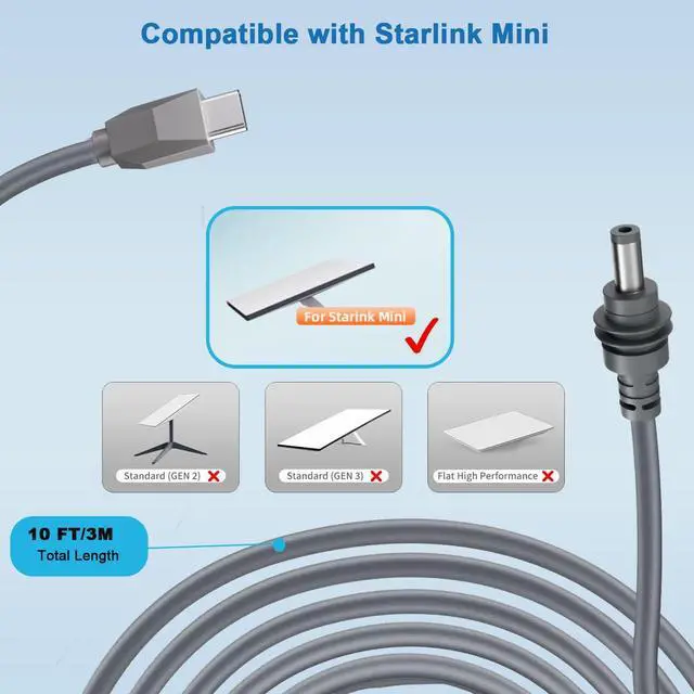 ![]() USB-C to DC Power Cable | ![]() Starlink Mini Car Adapter | ![]() 3 in 1 DC Power Cable | ![]() Starlink Mini Cable |