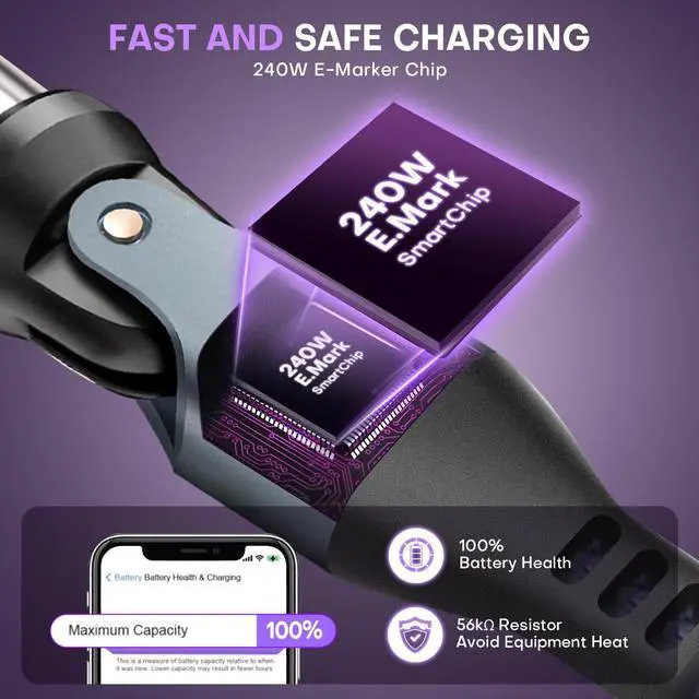 - Equipped with output: 48V/5A charger, 480Gbps data transfer.