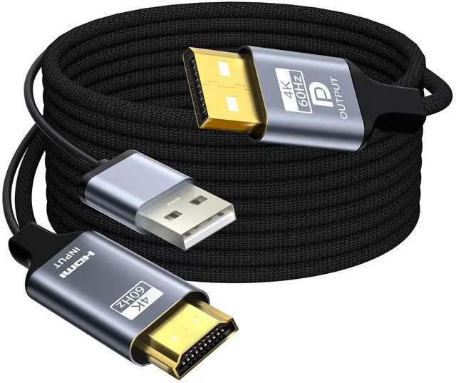 HDMI to DisplayPort Adapter, 6 feet Active 4K@60Hz HDMI to DP Braided Cable, Uni-Directional HDMI to DP with USB Power for PS5, Xbox Series X/S, Switch, PC, Laptop to DP Monitor, NVIDIA AMD