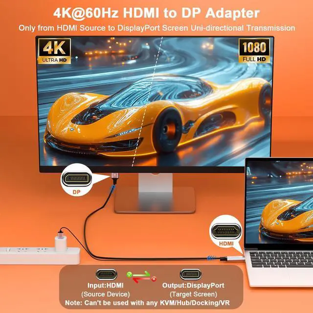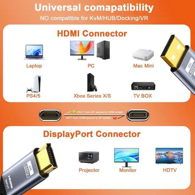 This versatile active HDMI to DisplayPort adapter is truly plug-and-play, requiring no drivers. It's universally compatible with PS5, Xbox, Switch, laptops, and desktops. The included 5V/1A USB cable ensures stable power for flawless HDMI to DP 4K 60Hz performance.