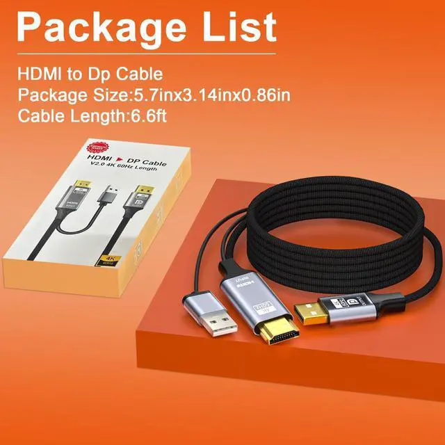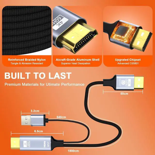 This active HDMI to DisplayPort cable utilizes the advanced CS5801 chip to deliver flawless HDMI to DP 4K 60Hz conversion. Experience native 3840x2160 (Ultra High Definition) resolution with vibrant colors and perfectly synced audio for gaming and movies.