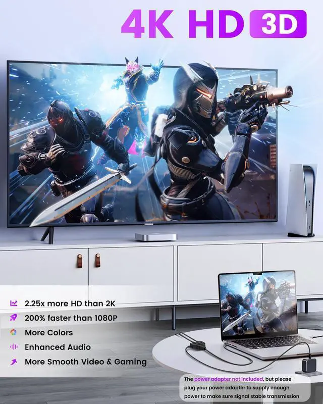 Important Notes: 1. HDMI cable adapter supports Mirror Mode only; does not support extended desktop. 2. No independent audio extraction to external speakers. 3. Not compatible with ARC/eARC 4. Designed as a 1-in 2-out mirror splittercannot switch between 2 source devices.