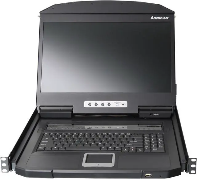 Integrated VGA 8-port LCD KVM console with 18.5" widescreen LCD monitor Single rail housing; top/bottom clearance for smooth operation in a 1U high system rack Control up to 128/256 computers by cascading up to 2 levels with IOGEAR's GCS1808 or GCS1716 LCD monitor supports resolution of 1366 x 768 @60Hz Short depth design allows for rack-mounting in narrow spaces Supports VGA video input; supports an external console with USB/VGA connectors Built-in USB Type-A port on front panel for peripheral sharing HID devices Dual Interface - Supports computers with PS/2 or USB Keyboards and Mice Auto PS/2 and USB interface detection Keyboard and mouse emulation (PS/2 & USB) for smooth switching and simultaneously booting multiple computers even when the console's focus is elsewhere Console lock design enables the console drawer to remain securely locked away in position when not in use Computer selection via pushbuttons, hotkeys, and multilingual On Screen Display (OSD) Broadcast mode - enables to send commands from the console to all connected computers to perform simultaneous operations Two level password security - only authorized users can view and control computers Auto Scan Mode - enables continuous monitoring of user-selected computers Multilingual keyboard mapping supports English (US), English (UK), French, German, German (Swiss), Hungarian, Italian, Japanese, Korean, Russian, Spanish, Swedish, and Traditional Chinese Standard rack mount kit included Plug-n-Play Firmware Upgradable Hot Pluggable