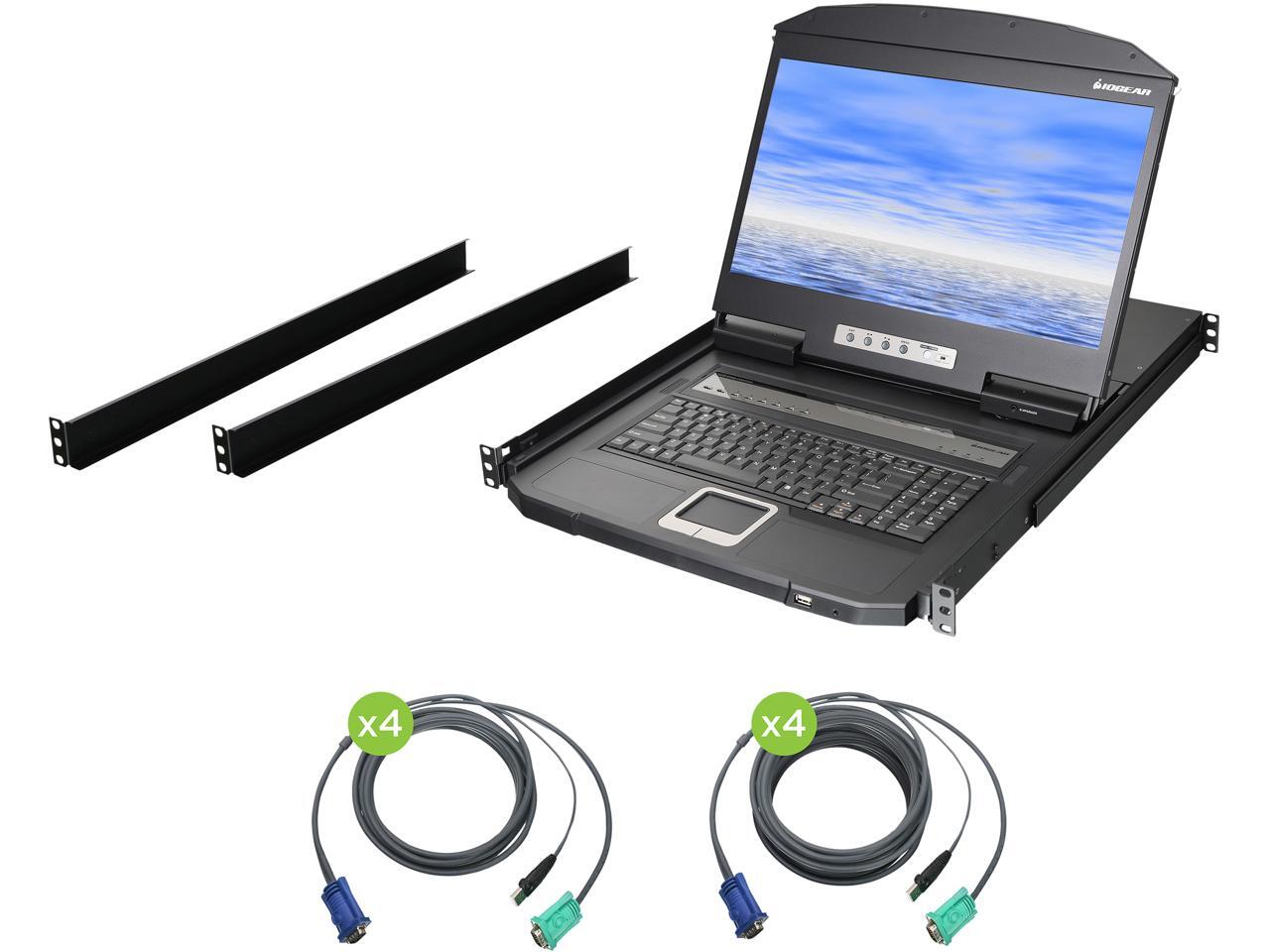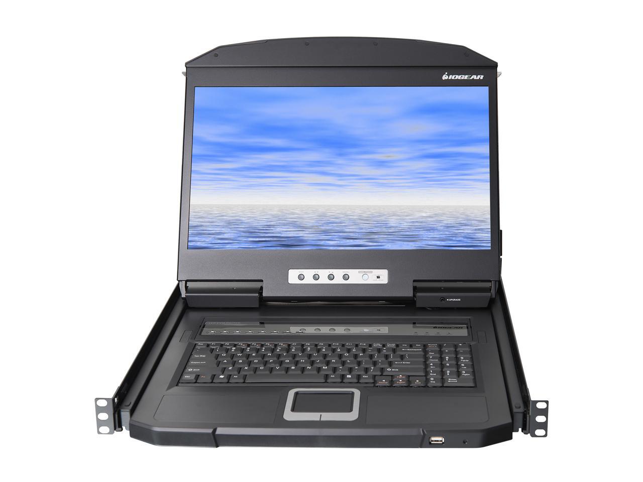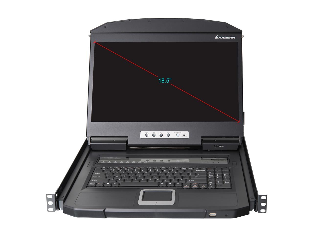 IOGEAR 18.5" Widescreen Short Depth 8-Port LCD KVM Switch with 8x USB KVM cables