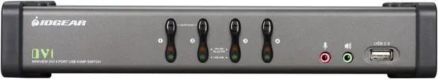 The IOGEAR DVI KVMP Switch GCS1104 charts a revolutionary new direction in KVM switch functionality by providing an interface for today's digital monitors while integrating a 4-port USB KVM switch with USB peripheral sharing capabilities.
